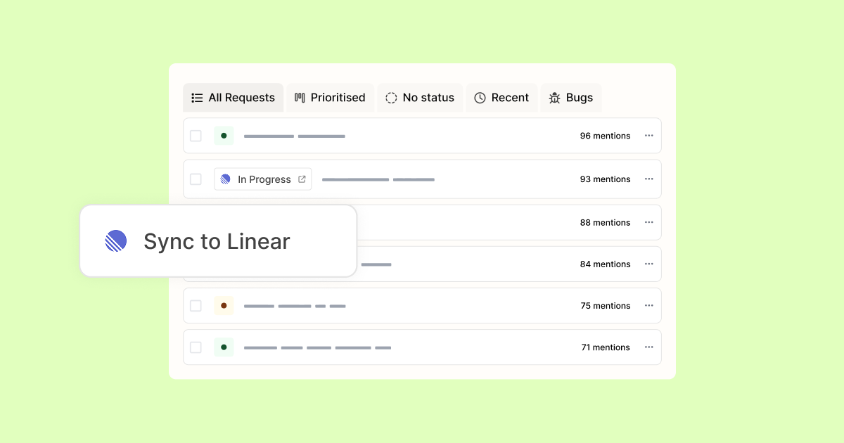 Found something worth building? Export requests directly to Linear with one click. Even better β you can select which team gets it. Once exported, you can see