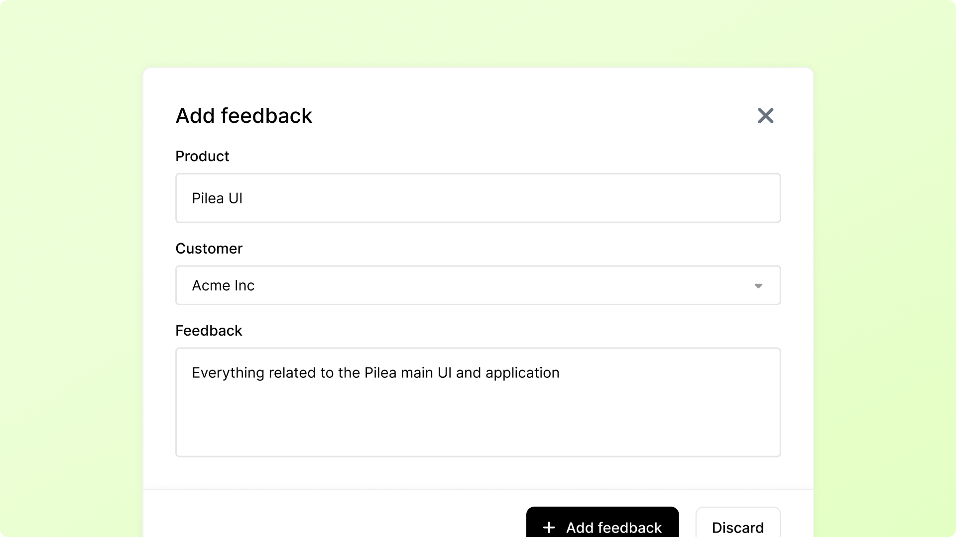 Your manually added feedback gets the same AI categorization and analysis as imported data, so it integrates seamlessly with everything else in Pilea.